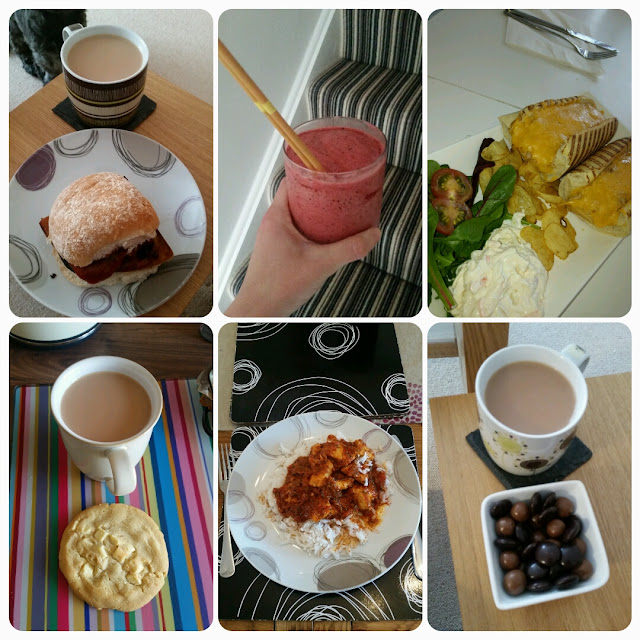 Really fancied something sweet with my decaf instant cappuccino this morning. Colleague opened thorntons millionaire shortbread minis. Had two. Had an apple turnover and a cup.of tea with colleague in staffroom after work. There was nothing decent in asda cafe so bought from.the store and went back to staff room. Dinner wasn't great had 6 slices of dominoes meatilicious stuffed crust over the night. Had picked husband up from train station as he has been down in Manchester since Wednesday at acdc concert.